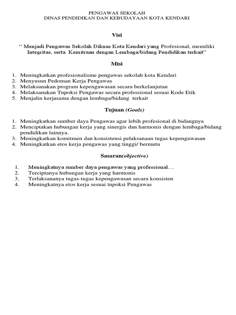 Contoh Visi Dan Misi Pengawas Sekolah